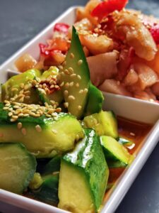 Shredded tofu with bean sprouts, sweetened tomato, or cucumber, or shredded kelp with bean sprouts, or or sweet and sour radish, etc. Please consult us for the salades of the day.