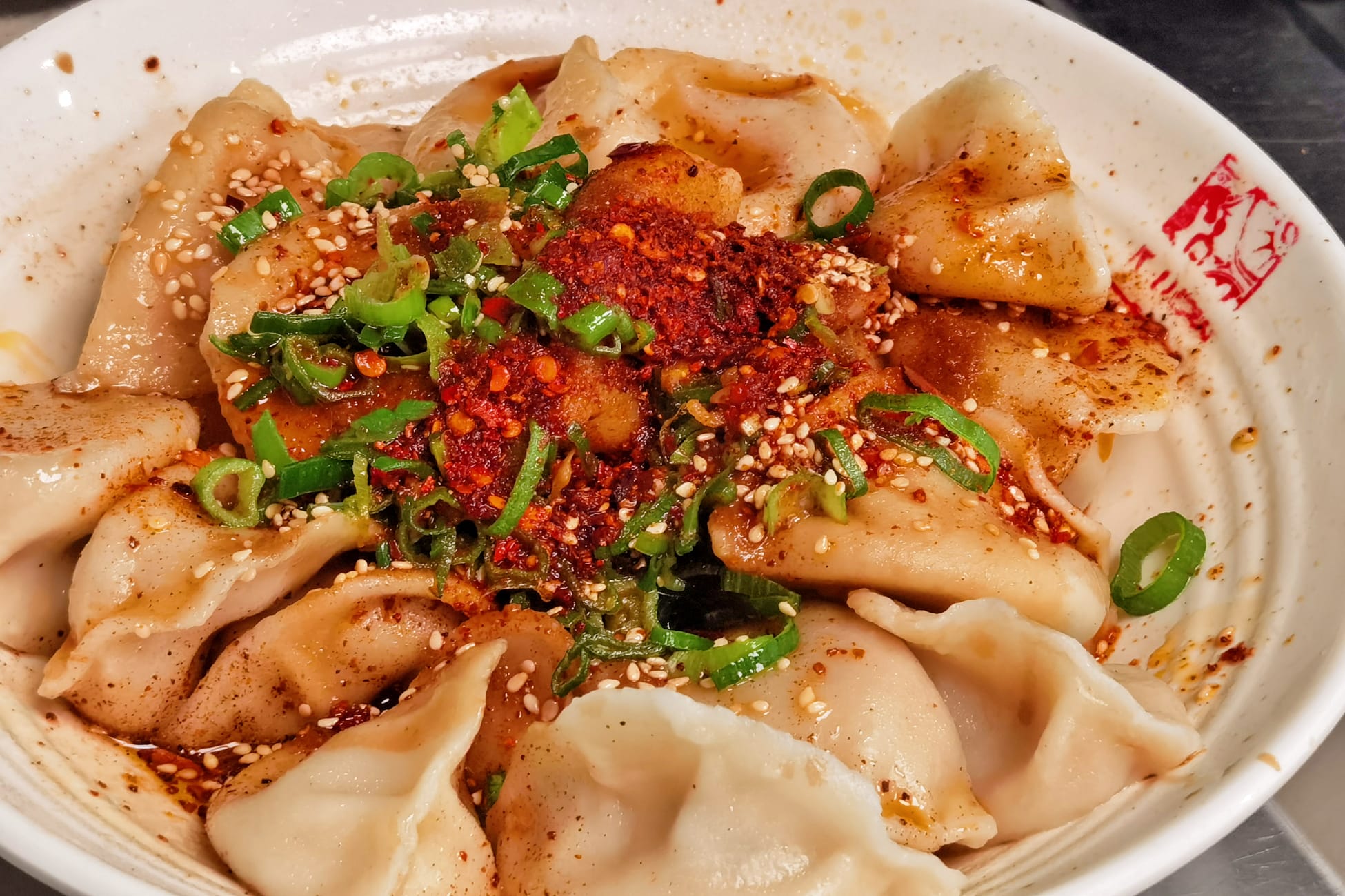 Hot oil / mala dumpling 12 pcs. (vege available) €10,00